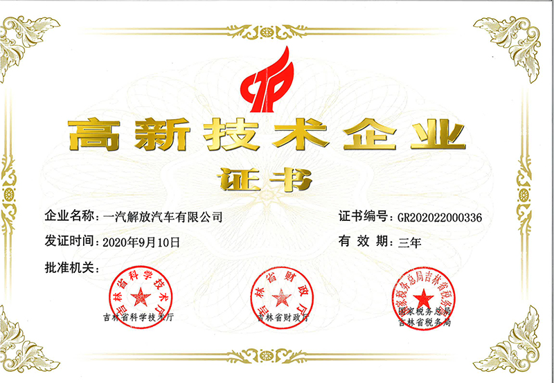2020吉林省科学技术厅、吉林省财政厅、国家税务总局吉林省税务局证书