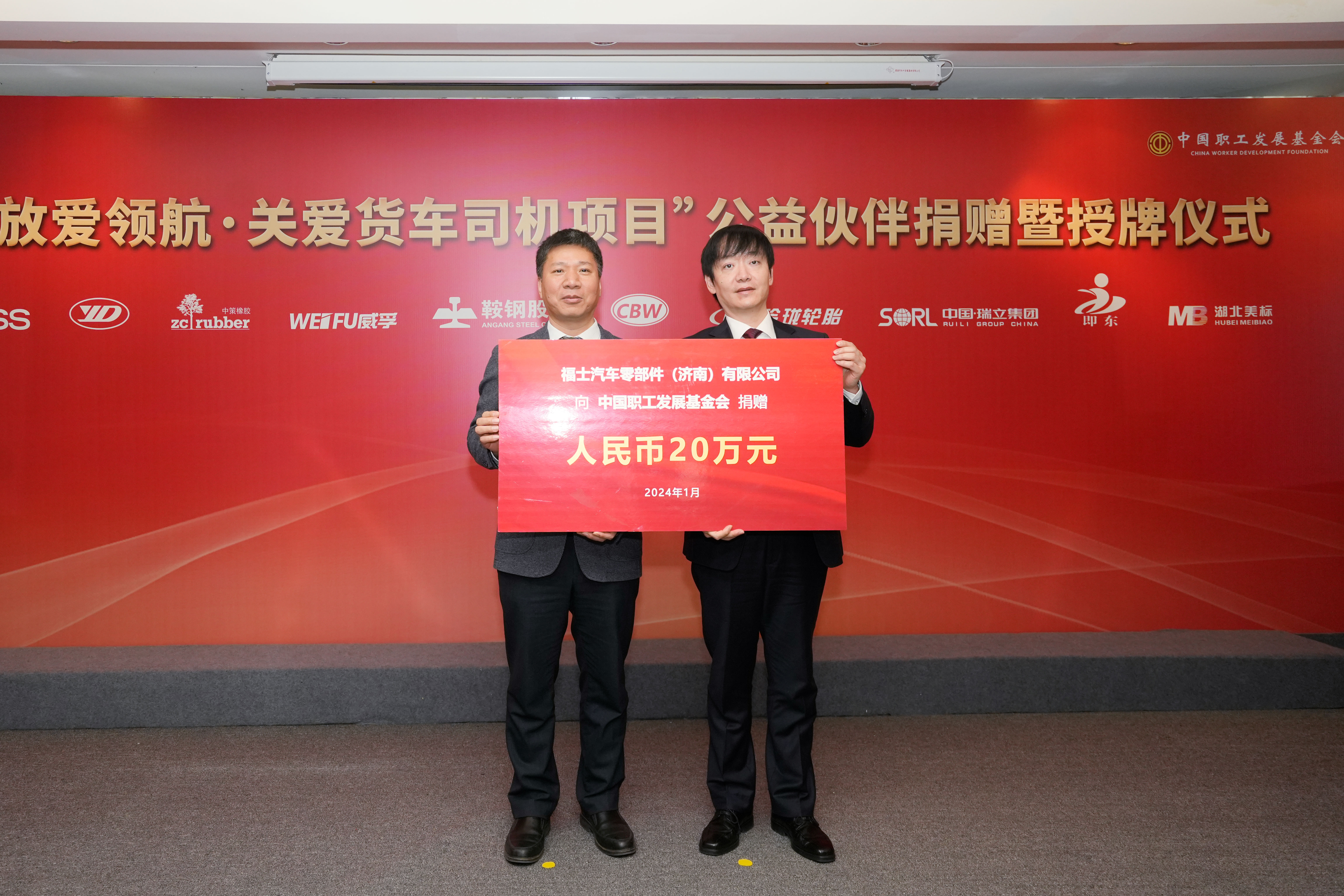 鞍钢股份、长春灯泡、无锡威孚、玲珑轮胎、中策橡胶、瑞立科密、长春一东、青岛即东、福士(济南)、湖北美标等10家供应商伙伴依次向基金会捐赠,每家20万元。
